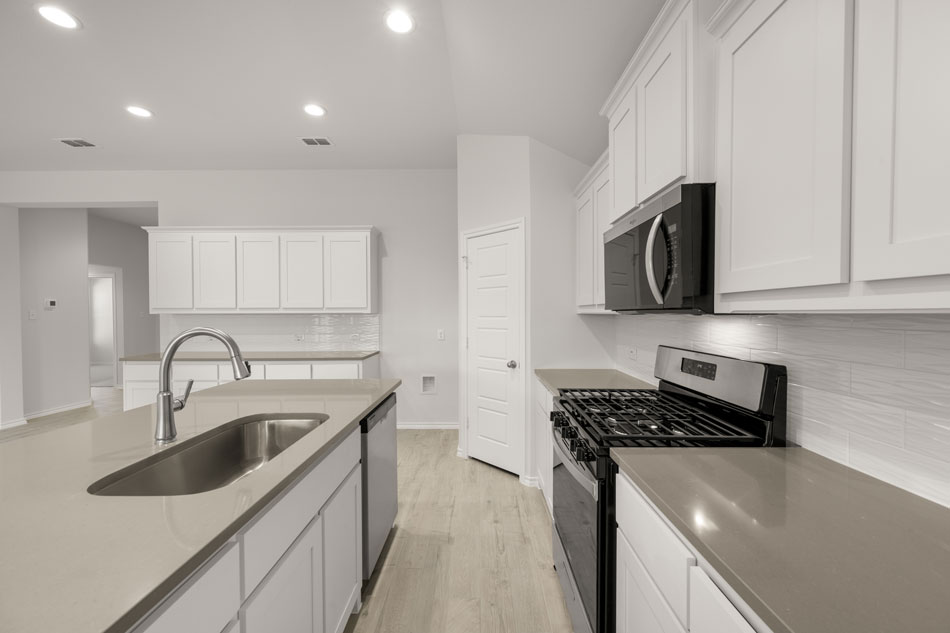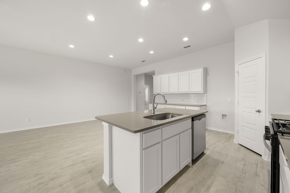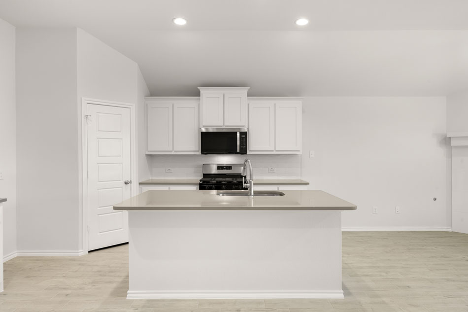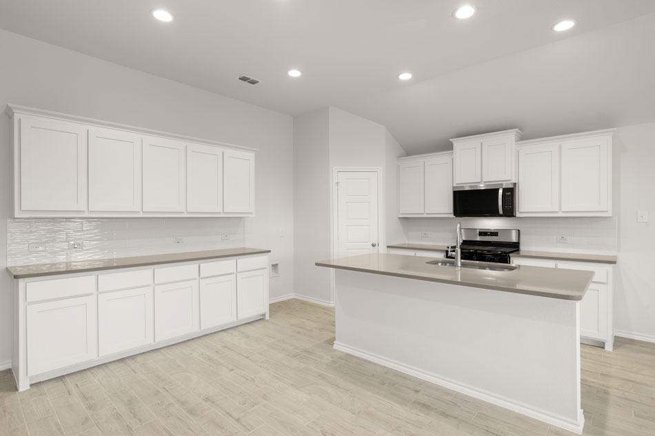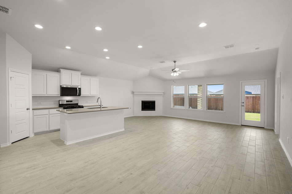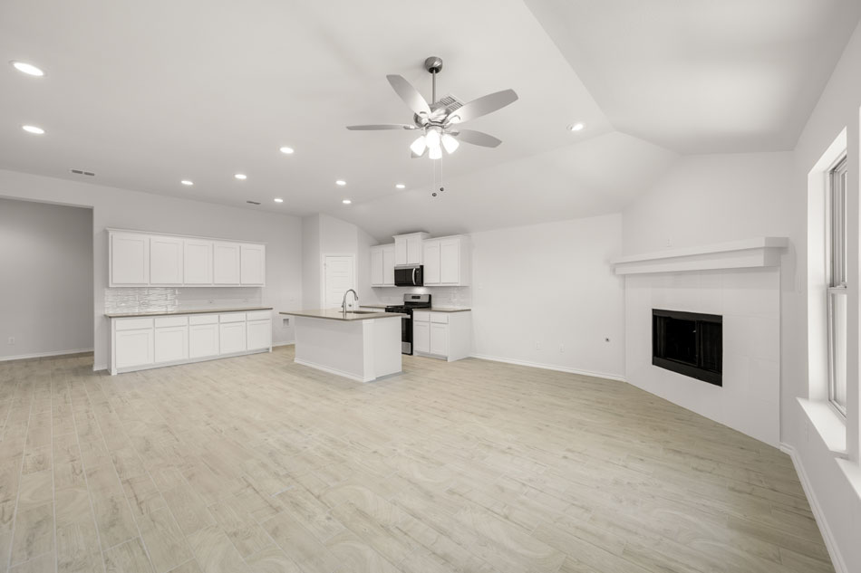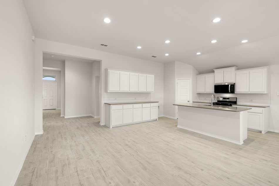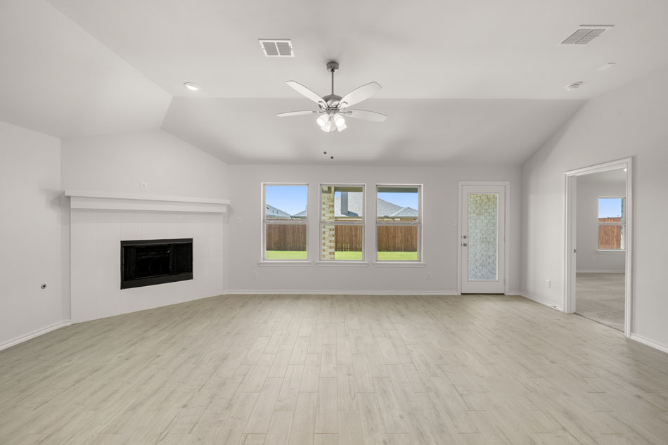 The Austin plan offers the perfect open concept design with a spacious foyer and long entryway into the family room. The kitchen boasts an island that is perfect for large gatherings. Vaulted ceilings and tall windows across the rear of the home flood the family room with light. The owner’s retreat features a Texas-sized walk-in closet and a bath with a separate shower and garden tub. Positioned near the foyer, the 4th bedroom makes for a great office or guest room. A window in the over-sized laundry room makes it light and bright.