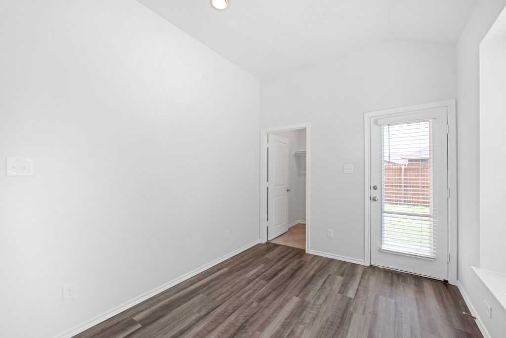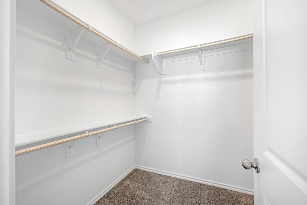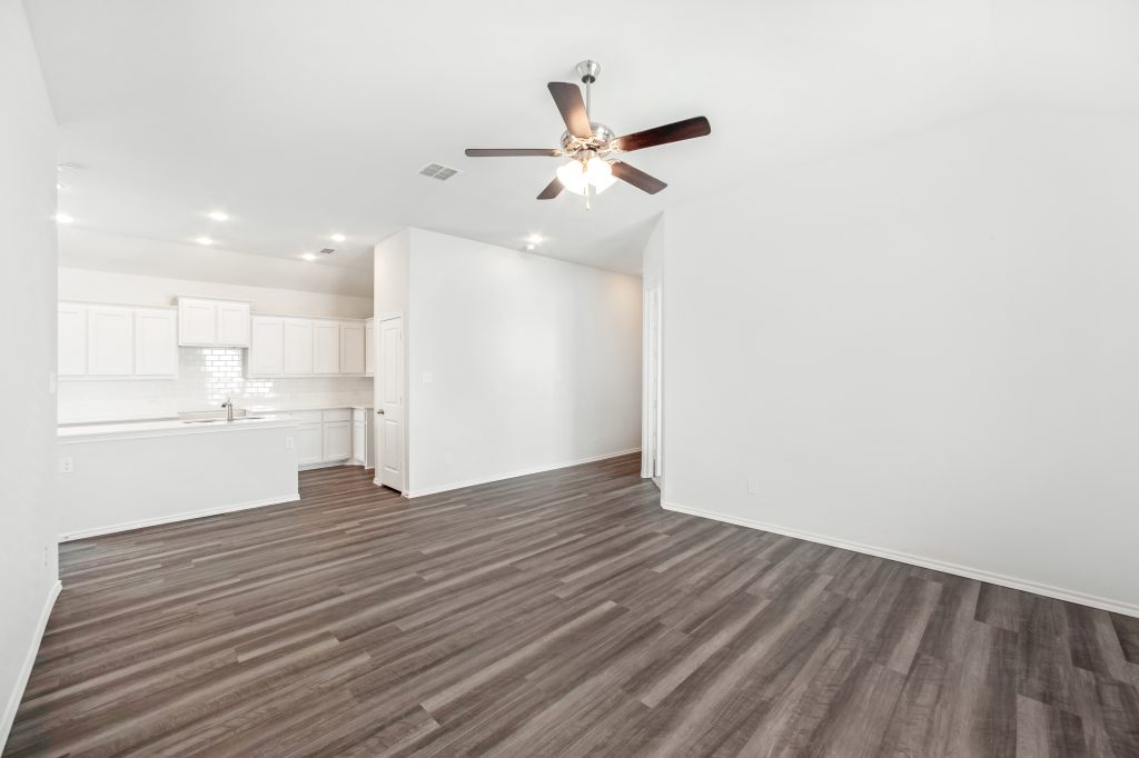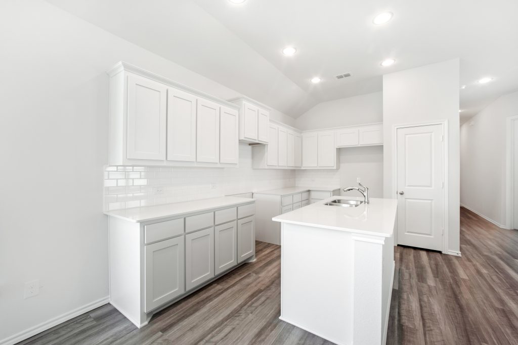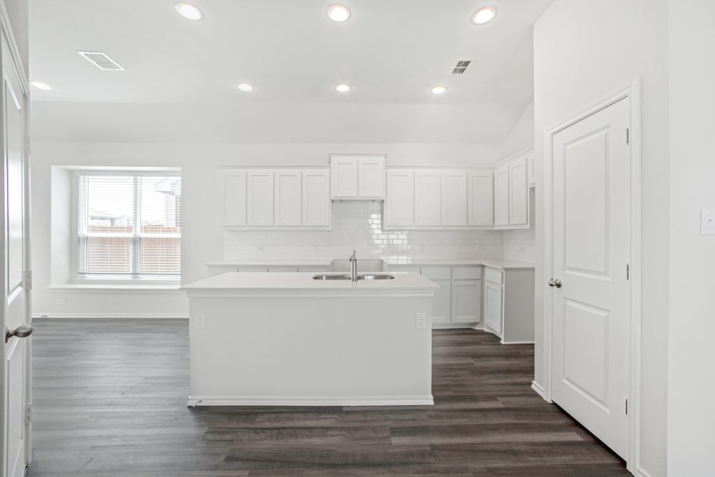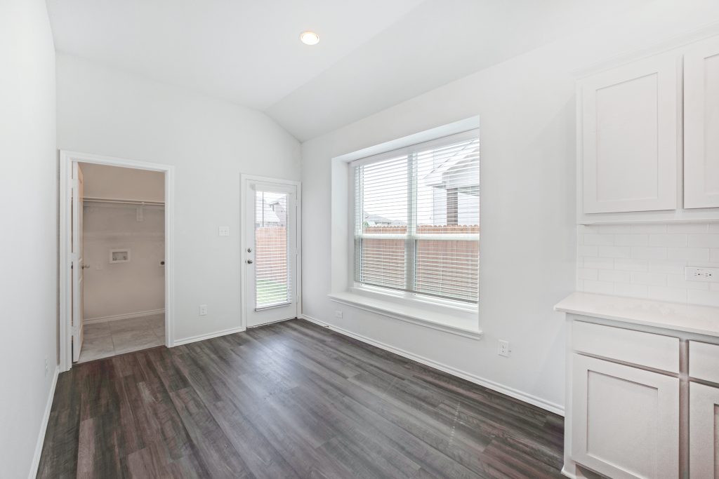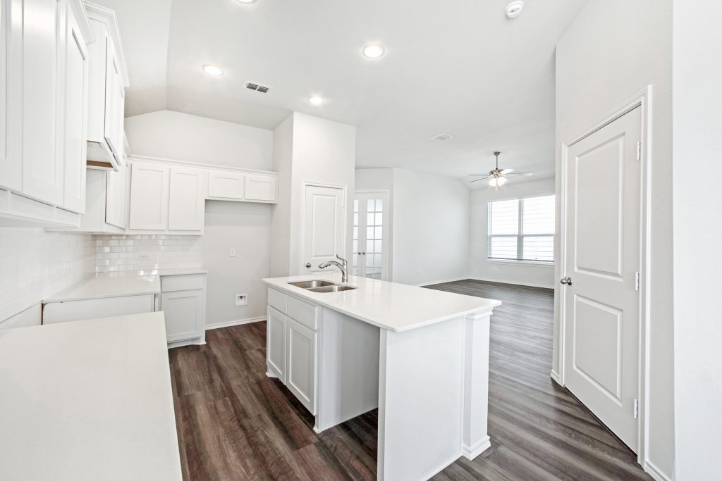 The Bastrop is a great one-story floorplan! The owner’s suite is located at the front of the home with dual vanity sinks and a walk-in closet. Both secondary bedrooms are across the hallway with a full bathroom between. Spacious family room with flex space. This plan has a great California kitchen with a dining nook. The home also features a large covered porch and rear-entry garage.