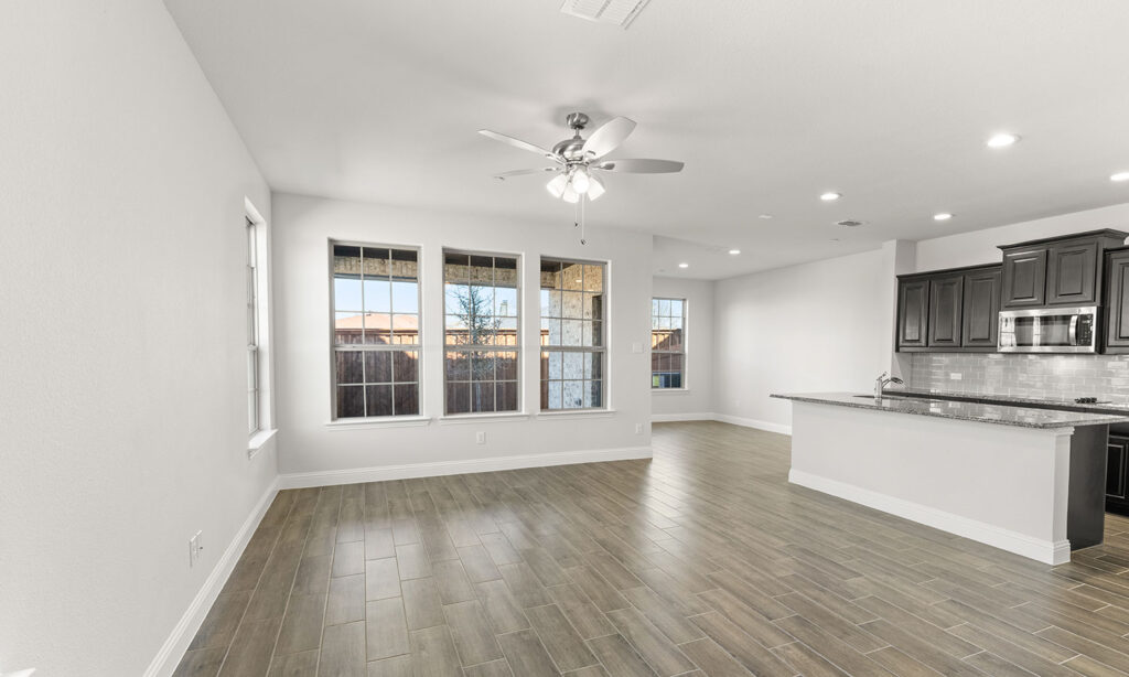 Luxury townhome living in Mansfield, TX. Pull into your front-entry garage and step inside to a mud room. Continue into the heart of the home to find the open-concept home of your dreams. The California kitchen, with ample counter space and cabinets for storage, opens to the spacious dining and family rooms. Completing the main floor is a conveniently located powder room and coat closet. Walk upstairs to a dedicated loft space, two secondary bedrooms, a secondary bath, utility room and owner’s suite. Tucked away from the other bedrooms, the owner’s suite is a private retreat offering an ensuite with a dual sink vanity, oversized shower and massive walk-in closet.