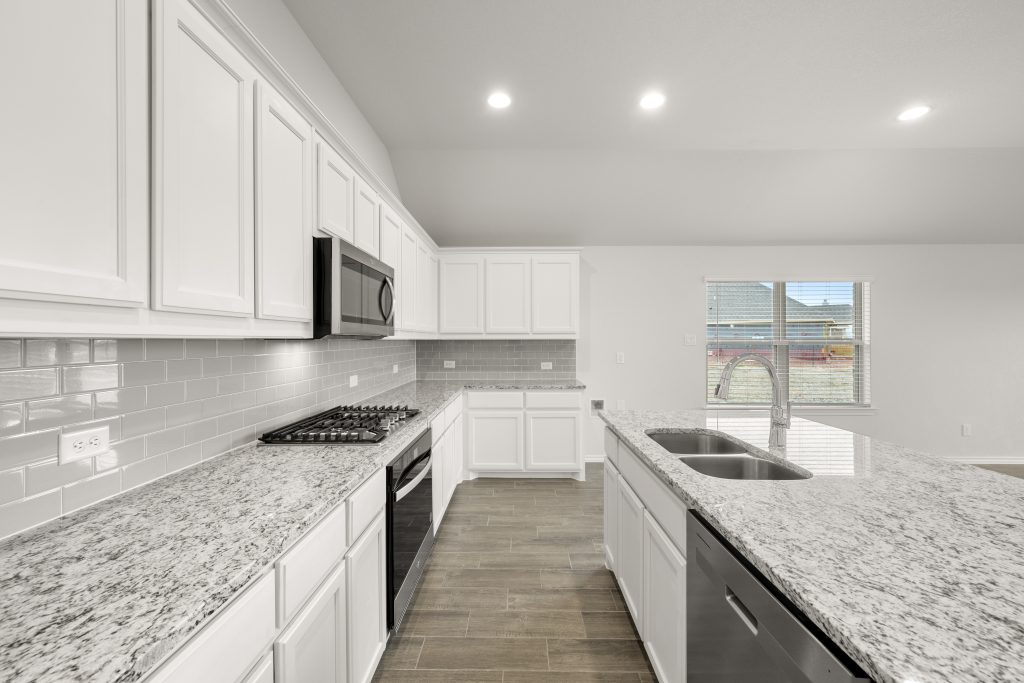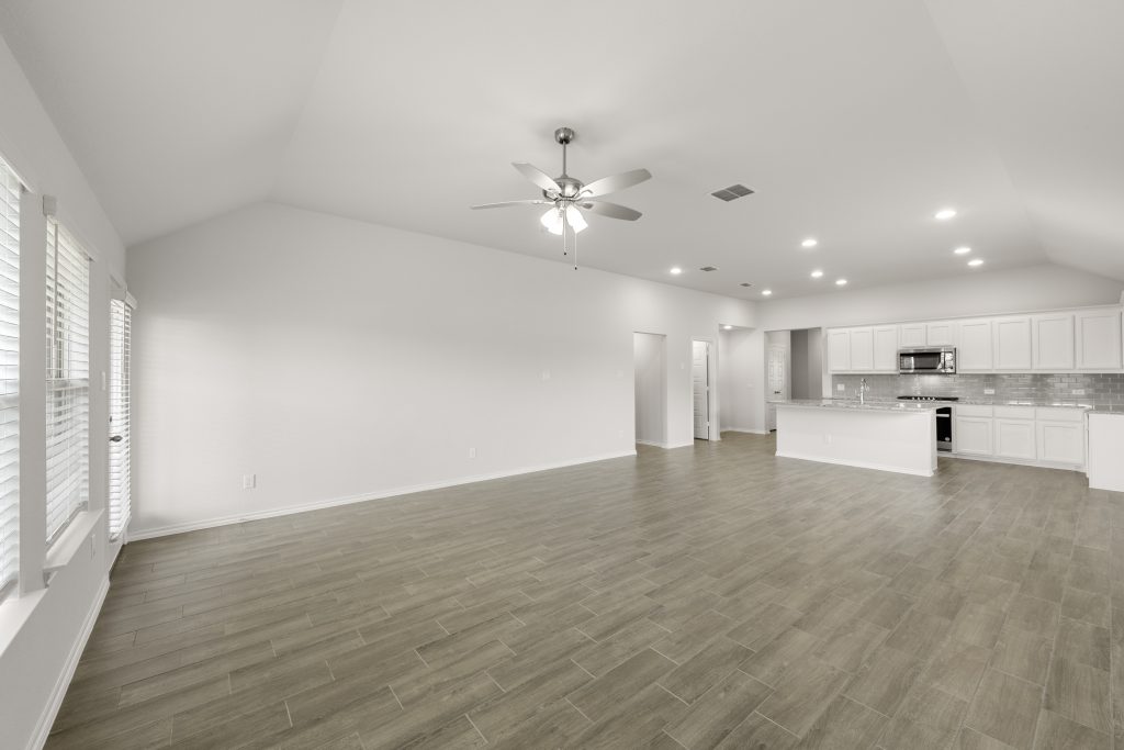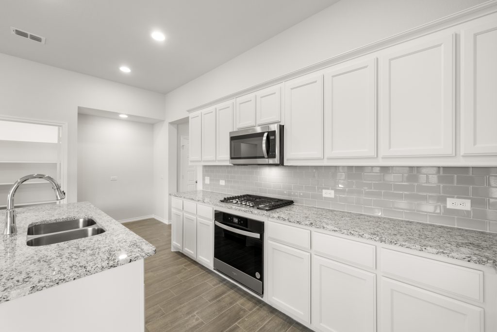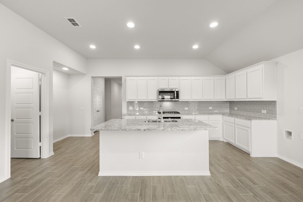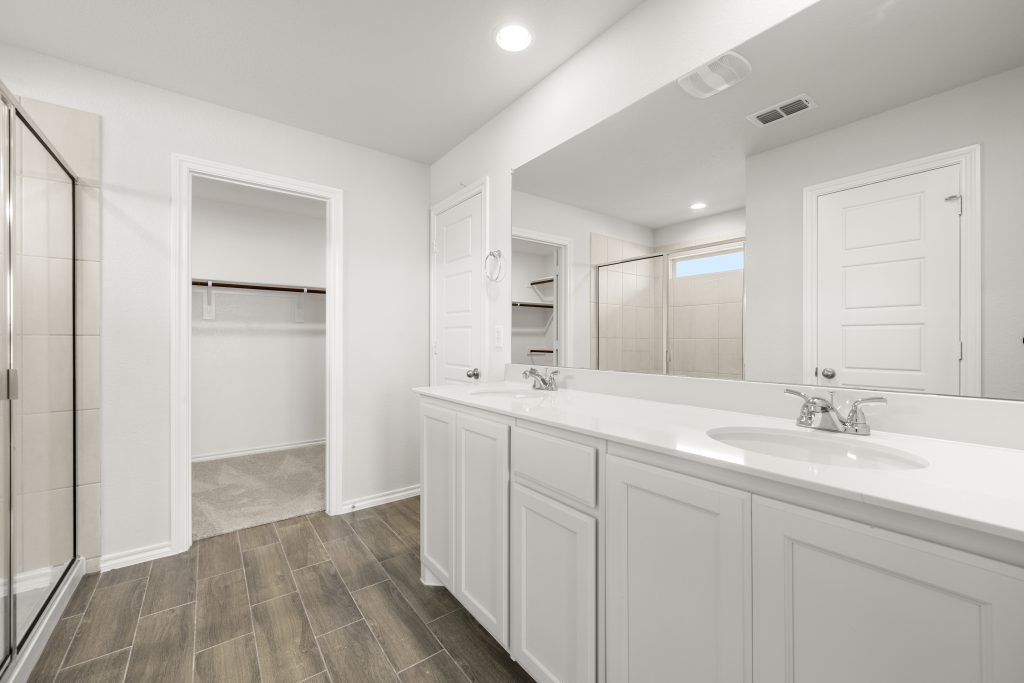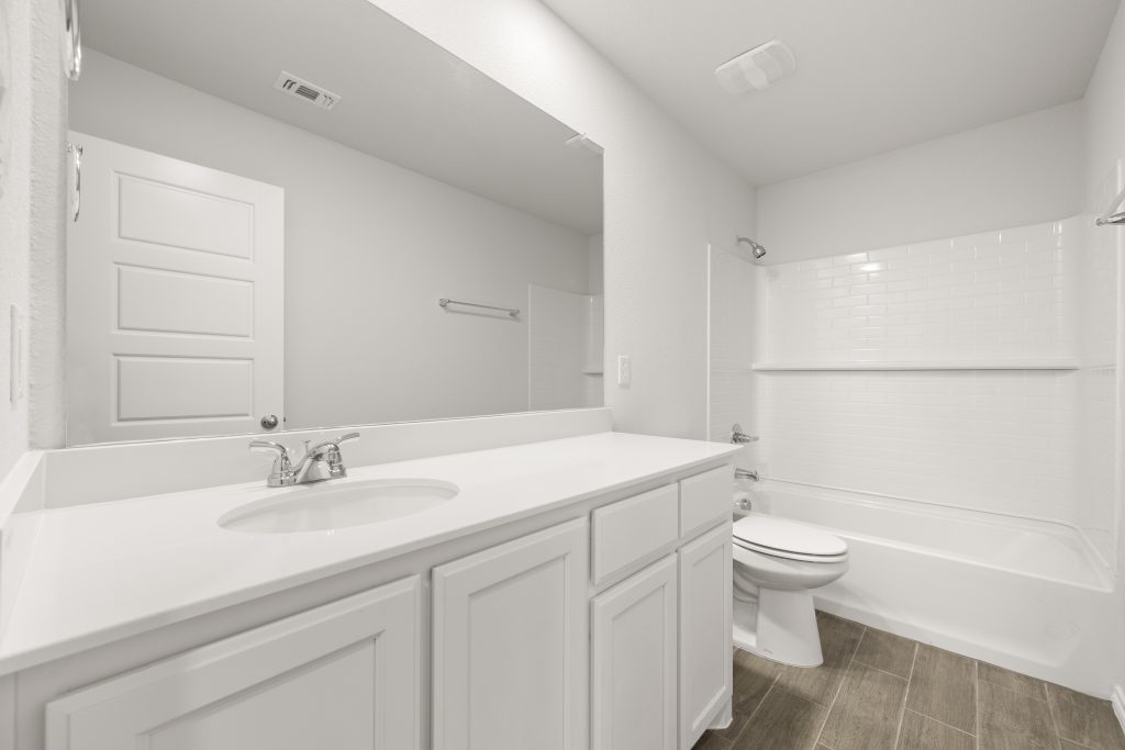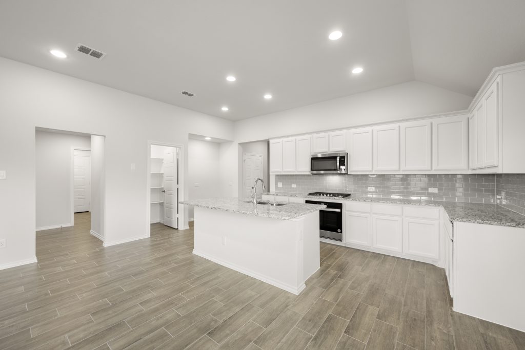 The Jarvis offers an open-concept layout, featuring a California kitchen with a spacious walk-in pantry, which opens to the dining nook and family room. This floorplan includes 3 bedrooms and 2 baths, including a private owner’s suite with a separate shower and garden tub as well as a large walk-in closet.