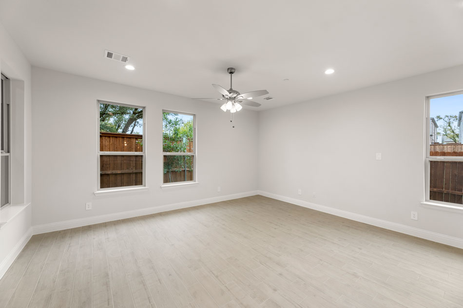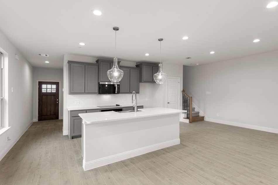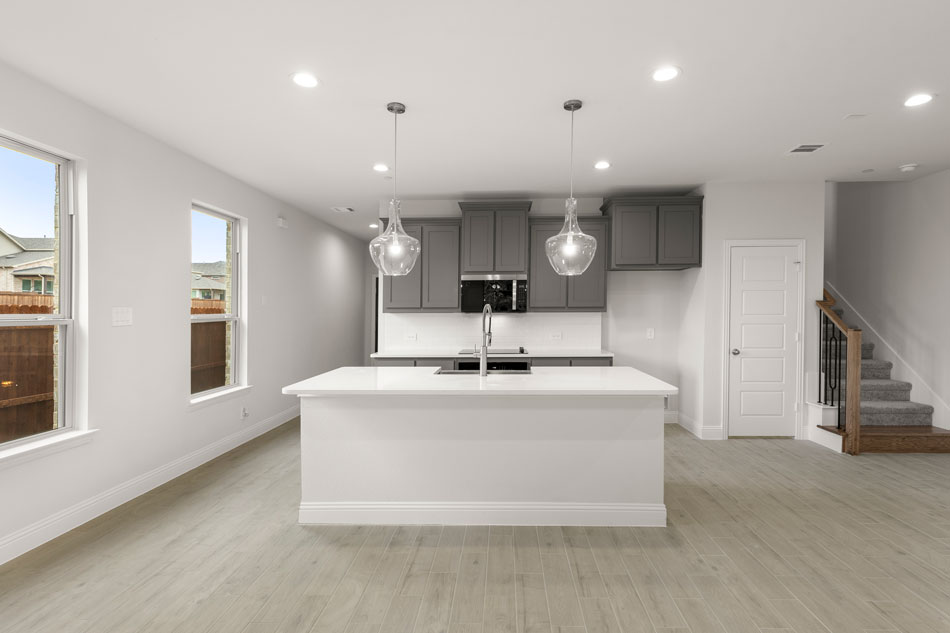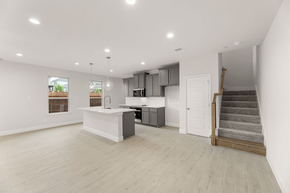 Luxury townhome living in Dallas, TX. Experience open concept living at its best as the California kitchen seamlessly opens to the generously sized family and dining rooms. Conveniently located, a downstairs powder room is appreciated for owners and guests alike. Upstairs, you’ll also find two secondary bedrooms, a secondary bath, a loft area, utility room and private owner’s suite offering dual sink vanity, oversized shower and massive walk-in closet.