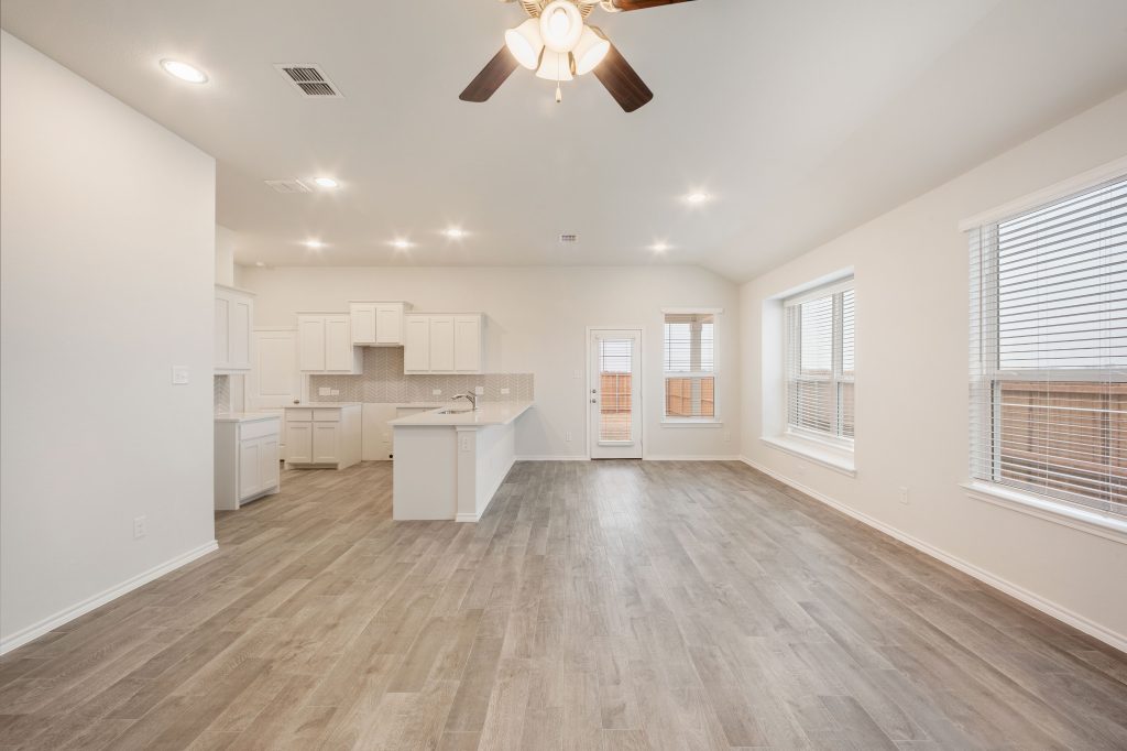 The Joliet plan offers a beautiful front porch! The owner’s suite is in the front of the home and offers a separate shower and garden tub, dual vanity sinks and a large walk-in closet. The kitchen opens to the dining area and spacious family room with large windows, which makes the home feel spacious! Window seating in the dining area brings in a lot of natural light.