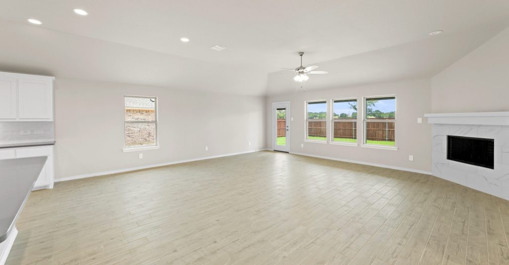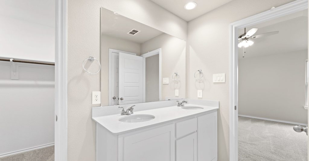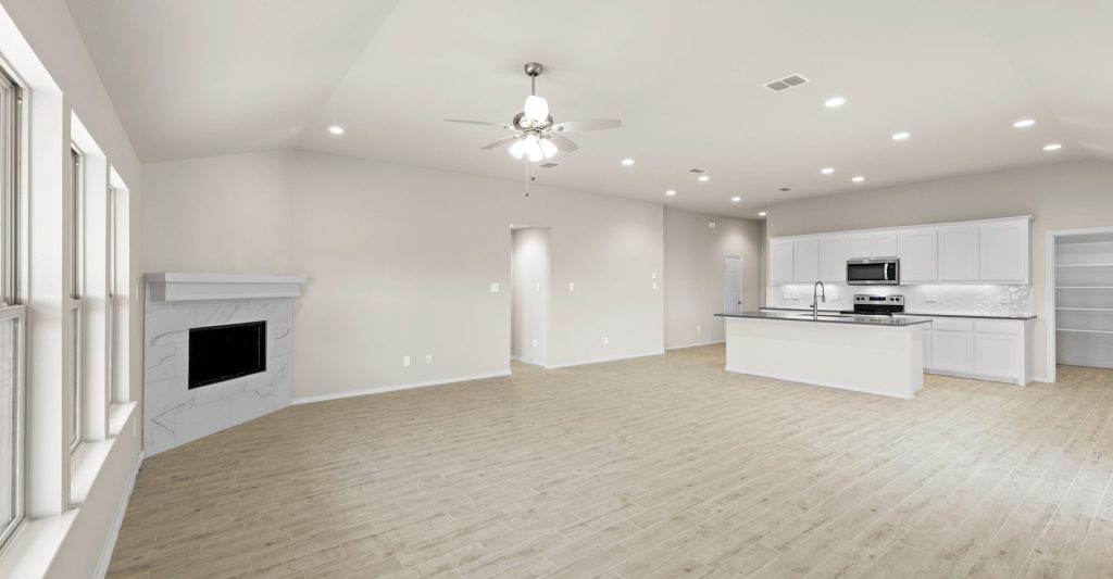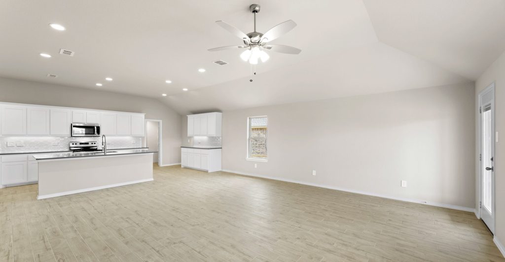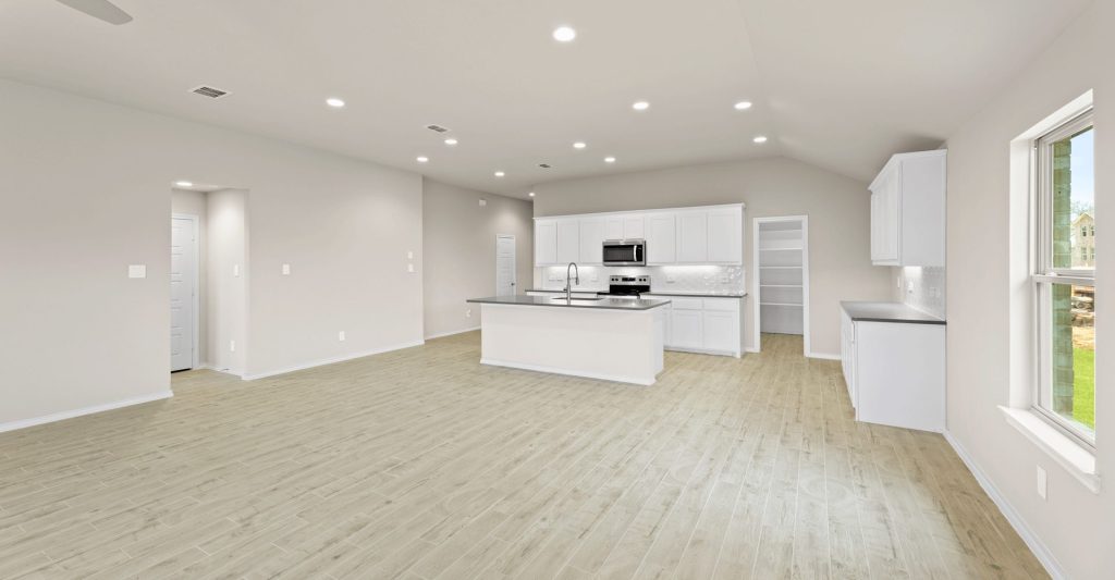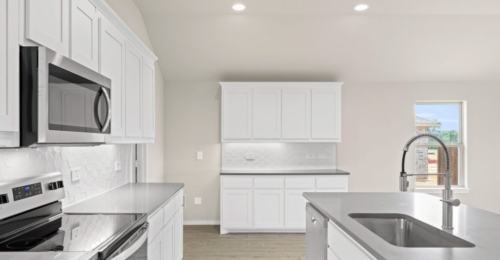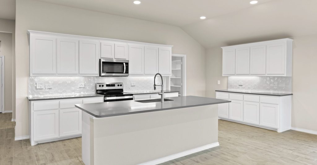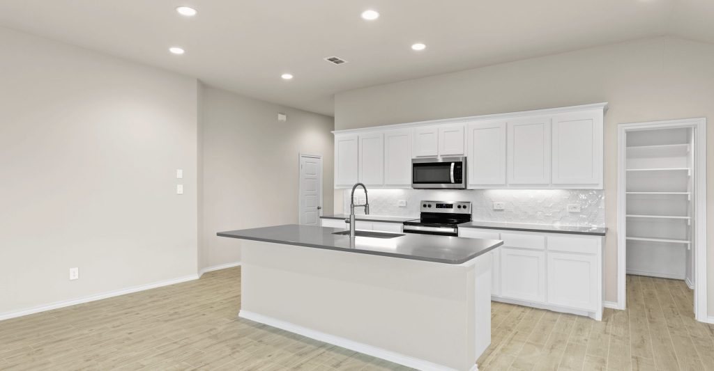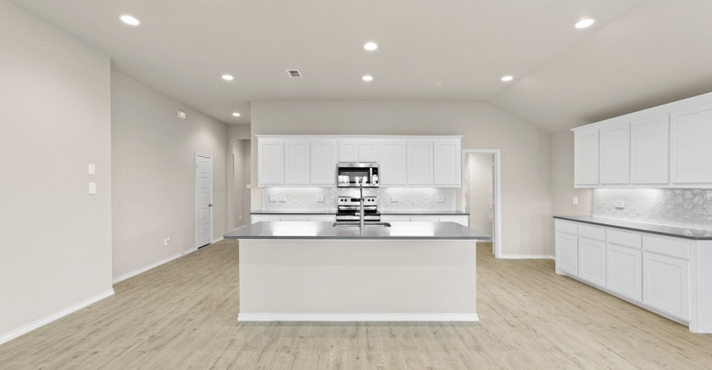 The Lincoln plan offers an open concept design with beautiful California-style kitchen, large island, and vaulted ceilings and a Texas-sized walk-in pantry for small appliances and storage. The elegant owner suite offers separate shower, garden tub, dual-sink vanity and large walk-in closet. Spacious, private secondary bedrooms and separate laundry room.