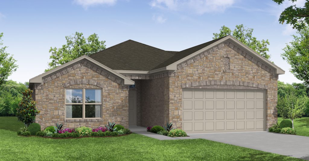 The Lincoln plan offers an open concept design with beautiful California-style kitchen, large island, and vaulted ceilings and a Texas-sized walk-in pantry for small appliances and storage. The elegant owner suite offers separate shower, garden tub, dual-sink vanity and large walk-in closet. Spacious, private secondary bedrooms and separate laundry room.