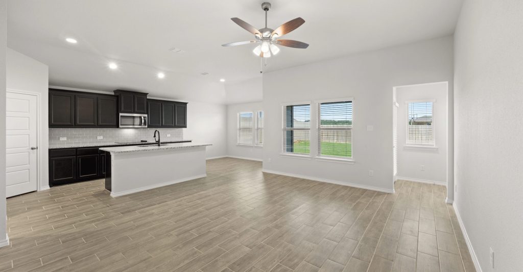 This one-story floorplan offers an open-concept living area with a California kitchen, big walk-in pantry. The kitchen overlooks the large family room and breakfast nook. Enjoy your private owner’s suite with a separate shower and an oversized walk-in closet. The secondary bedrooms each have a walk-in closet and a linen closet in the hallway.