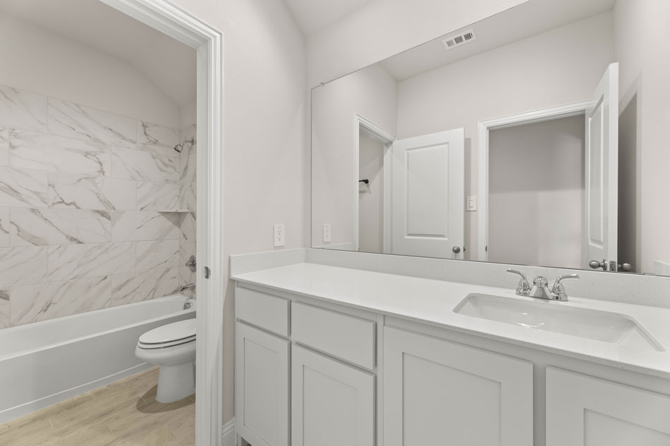 The Kingston plan has is a great one-story plan with a beautiful entryway. This plan offers a California kitchen that flows into the dining area with boxed window seat, and large family room offers ample space for get-togethers. The private owner’s suite features a dual vanity sink, garden tub, separate shower and large walk-in closet. Spend time relaxing on the covered patio!