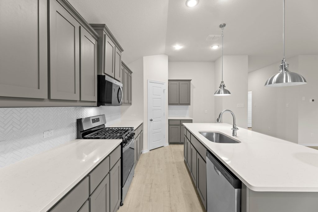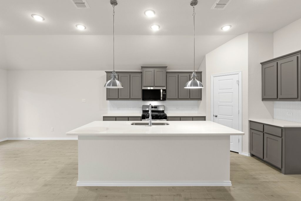 The Lexington plan offers an open concept design with beautiful California-style kitchen, large island, and vaulted ceilings and a Texas-sized walk-in pantry for small appliances and storage. The elegant owner suite offers separate shower, garden tub, dual-sink vanity and large walk-in closet. Spacious, private secondary bedrooms and separate laundry room.