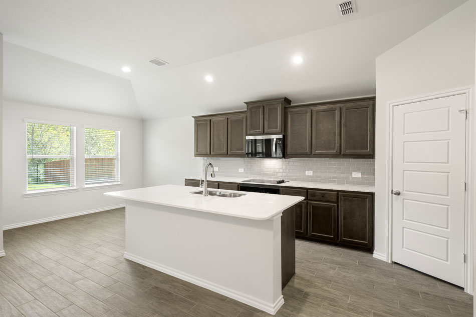 This one-story floorplan offers an open-concept living area with a California kitchen, big walk-in pantry. The kitchen overlooks the large family room and breakfast nook. Enjoy your private owner’s suite with a separate shower and an oversized walk-in closet. The secondary bedrooms each have a walk-in closet and a linen closet in the hallway.
