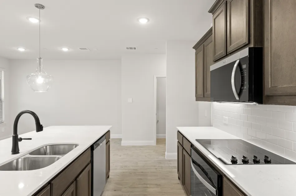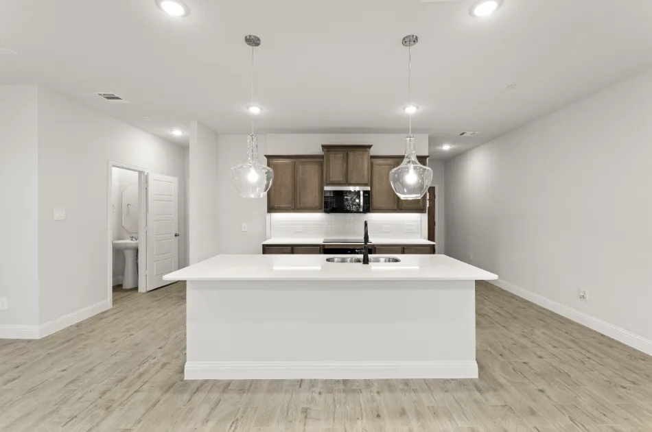 Meet our Amber floor plan- Luxury townhome living in Dallas, TX. Experience open concept living at its best as the California kitchen seamlessly opens to the generously sized family and dining rooms. Conveniently located, a downstairs powder room is appreciated for owners and guests alike. Upstairs, you’ll also find two secondary bedrooms, a secondary bath, a utility room and private owner’s suite offering dual sink vanity, oversized shower and massive walk-in closet.