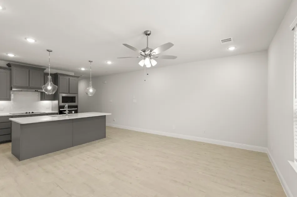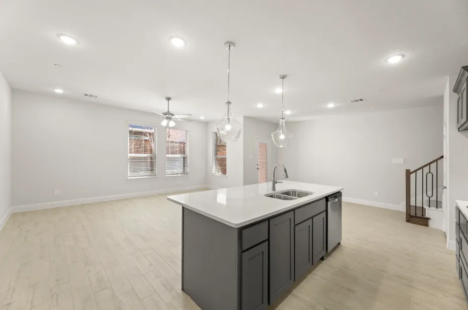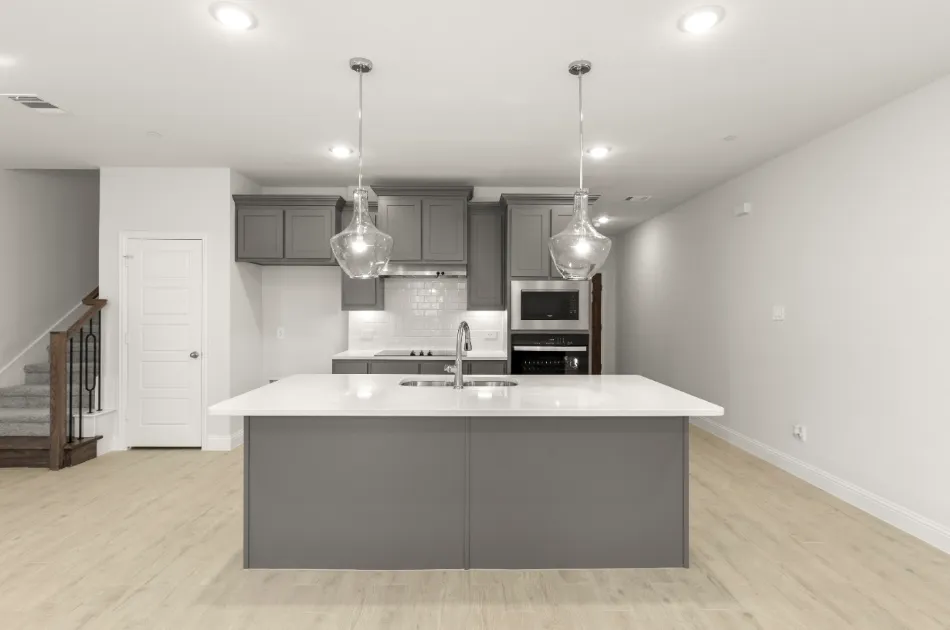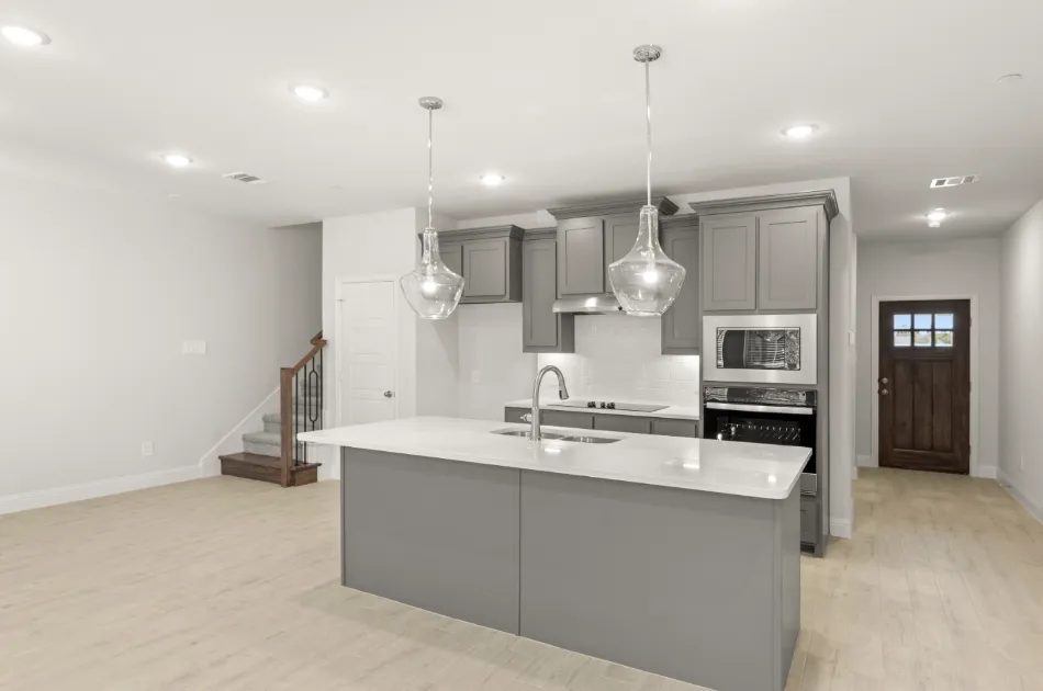 Meet our Opal floor plan- Luxury townhome living in Dallas, TX. Experience open concept living at its best as the California kitchen seamlessly opens to the generously sized family and dining rooms. Conveniently located, a downstairs powder room is appreciated for owners and guests alike. Upstairs, you’ll also find two secondary bedrooms, a secondary bath, a loft area, utility room and private owner’s suite offering dual sink vanity, oversized shower and massive walk-in closet.