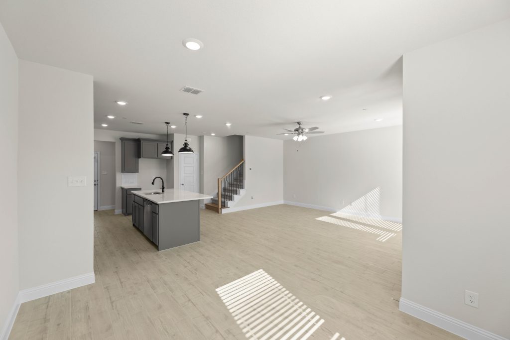 A comfortable townhome design offers a main-level, open-concept layout with a generously-sized family room ideal for entertaining family and guests alike. Fall-in-love with the California kitchen offering large island, stainless steel appliances, and granite countertops and enjoy eating dinners at home in the spacious dining room with large window allowing for an abundance of natural light. Head upstairs to find your owner’s suite with adjoining bathroom featuring a dual sink vanity, oversized shower and massive walk-in closet, as well as two additional bedrooms and a secondary bath. A well-placed utility room, located next to all the bedrooms, is convenient and makes laundry a breeze.