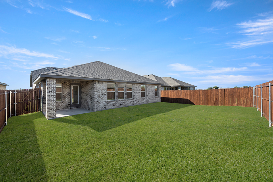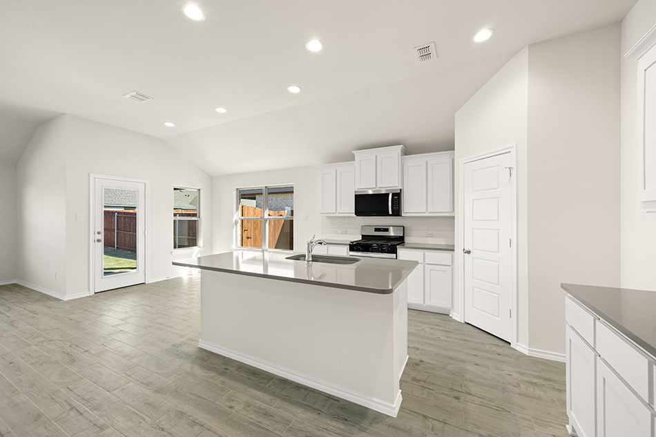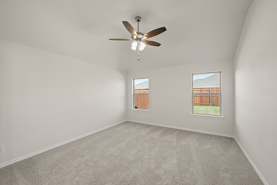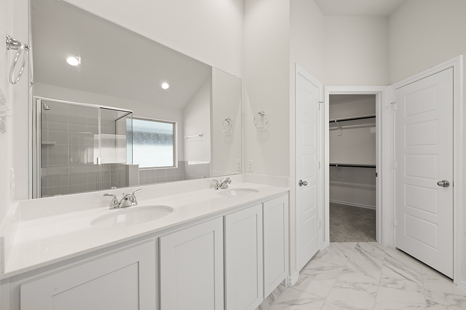 The Cheyenne is a large, one-story home with split bedrooms and an open-concept living space. The kitchen includes an island, which expands into the dining nook and large family room, and has a walk-in pantry. This floorplan features 4 bedrooms and 2 baths, including a large owner retreat with dual vanity sinks and a large walk-in closet in the bathroom. The guest bath also offers a linen closet, and garage access goes through a mudroom.