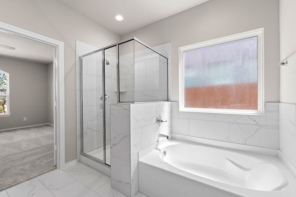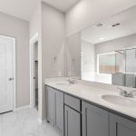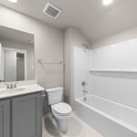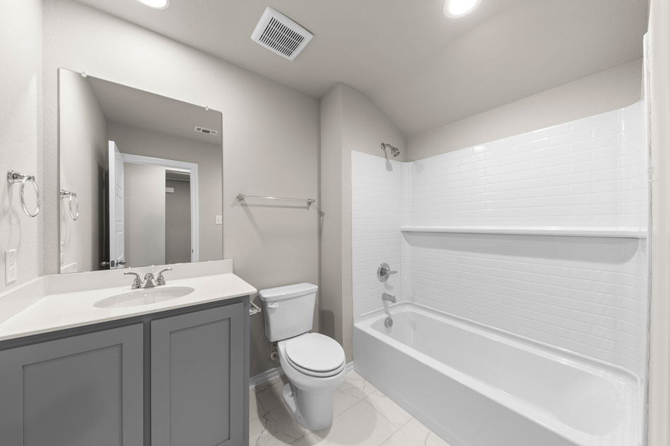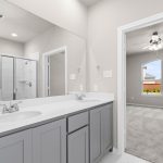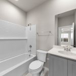 The Cameron plan is a great two-story plan with a flex room at the front of the home. With a large window in the dining nook, plenty of natural light pours in. The beautiful California kitchen opens to the dining nook and family room. This plan has two bedrooms on the main floor, including the owner’s suite which features dual vanity sinks, a garden tub, a separate shower, and a large walk-in closet. The second floor has two secondary bedrooms and a full bathroom. The front porch offers a great place to enjoy a cup of coffee!
