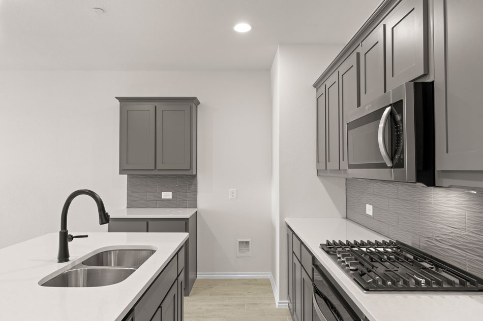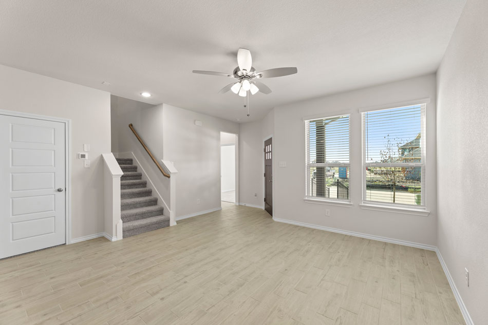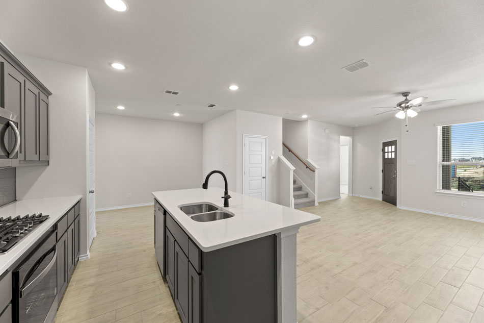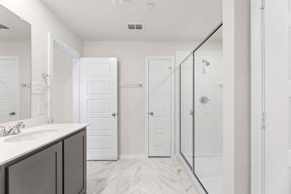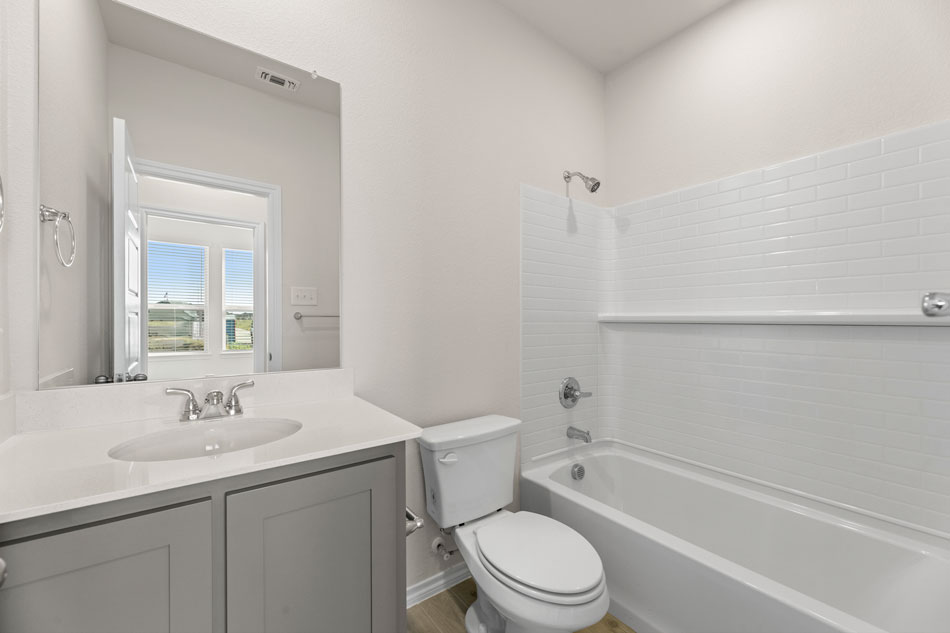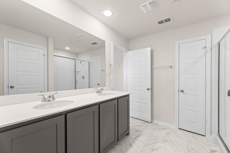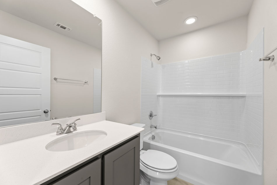 The Conroe floorplan offers a great layout with a first-floor bedroom and bath. The downstairs also offers a California kitchen, dining area, family room and storage under the stairs. The second floor includes two more bedrooms, full bath, large owner’s suite with spacious walk-in closet, dual vanity sink and oversized walk-in shower. Take advantage of the covered porch to relax and enjoy morning coffee.