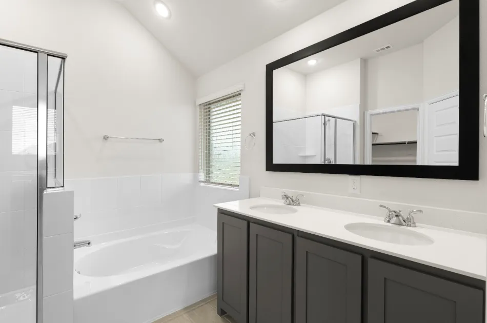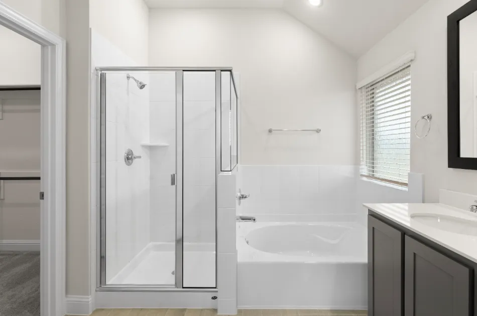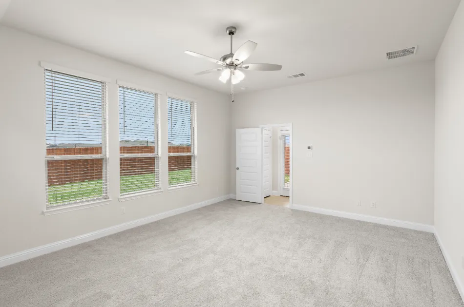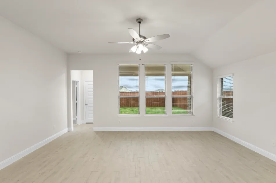 Spacious one-story plan with generous living areas. California kitchen with ample storage space, large walk-in pantry and formal dining room off the kitchen. Private owner’s suite with dual vanity sinks, garden tub, separate shower and a large walk-in closet. Spend time relaxing on the covered patio, and take advantage of the storage space throughout.