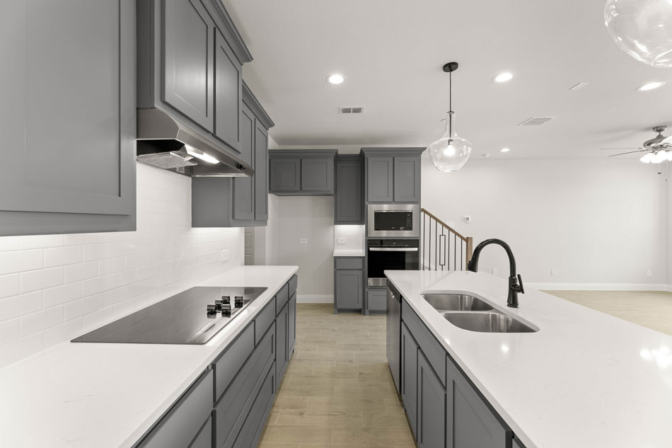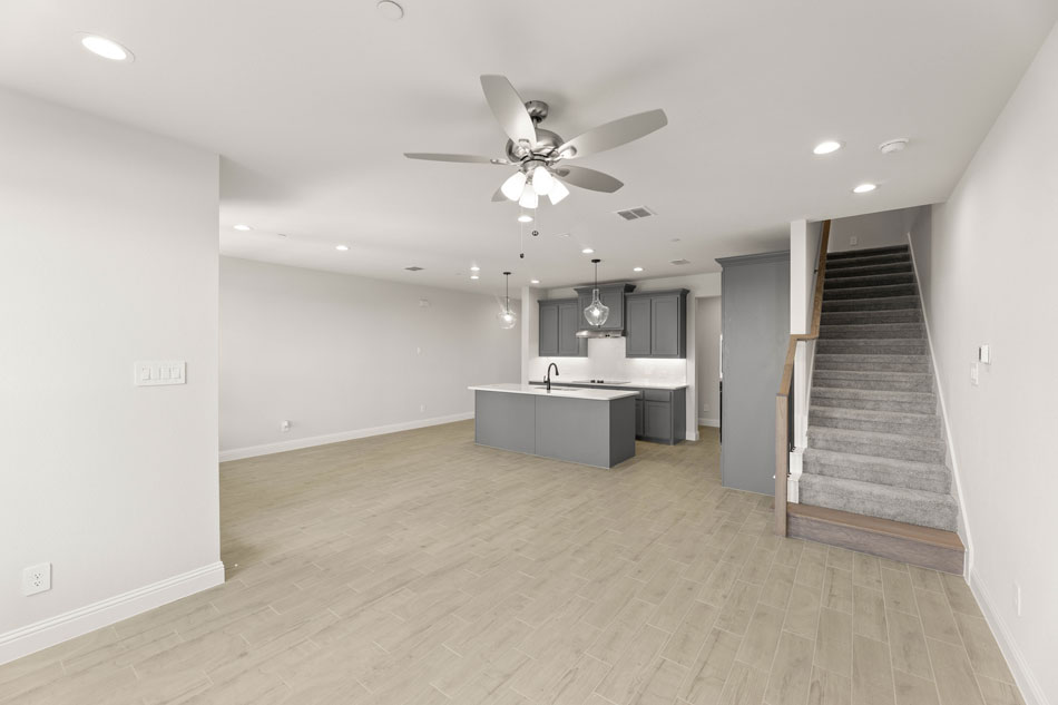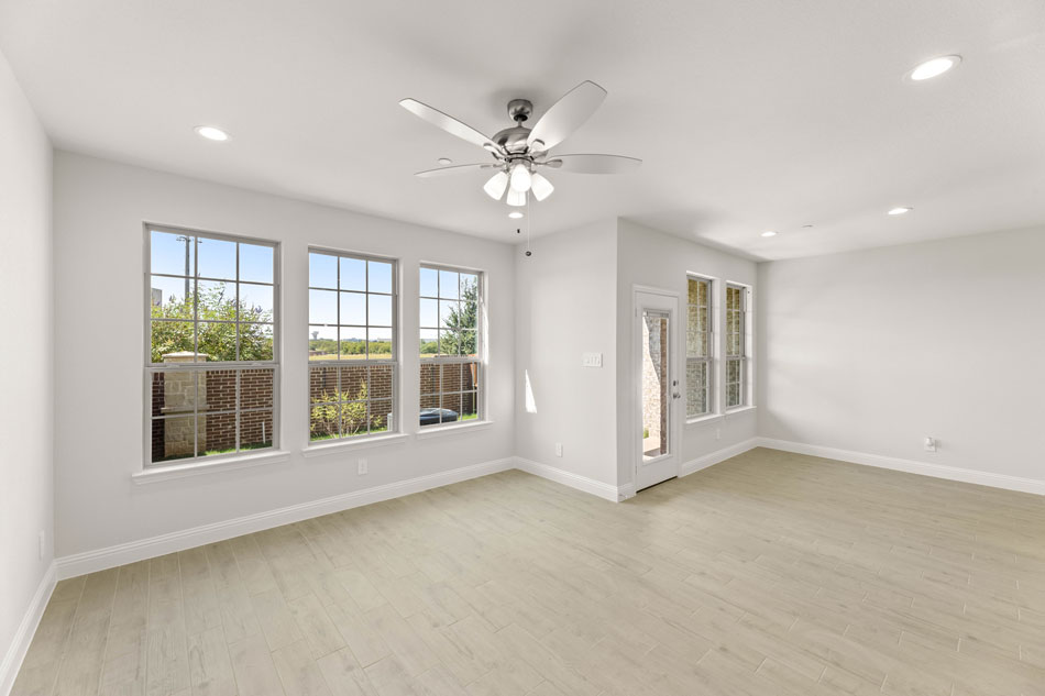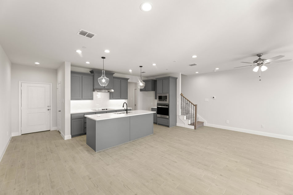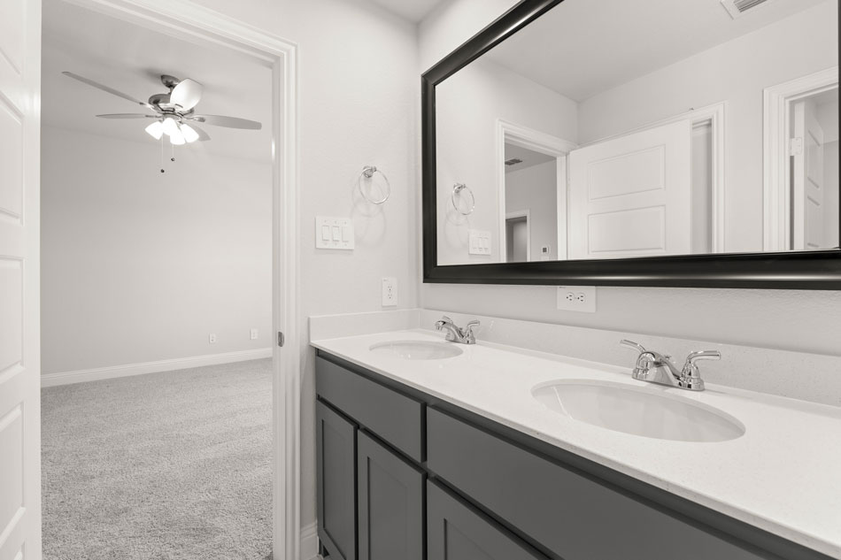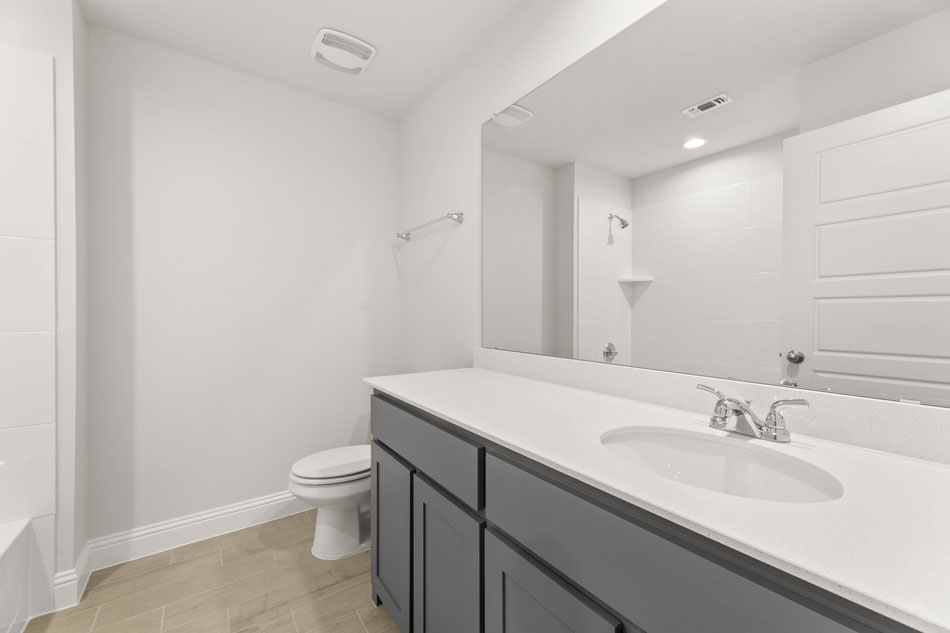 Luxury, low-maintenance living in Mansfield, TX! Front entry garages allow for ample parking and a dedicated backyard! Come into an open-concept living/dining/kitchen complete with a kitchen island and a spacious pantry. The California Sous Chef kitchen has ample counter and cabinet space and features pot and pan drawers and trash pull-out. Completing the main floor is a conveniently located powder bath and a coat closet. Upstairs you will find three split bedrooms, two baths, and a nicely situated laundry room. The owner’s suite is privately tucked away and offers a dual sink vanity, oversized shower, and spacious walk-in closet.