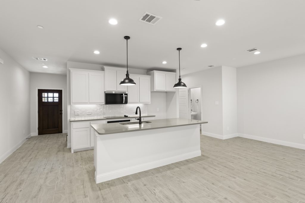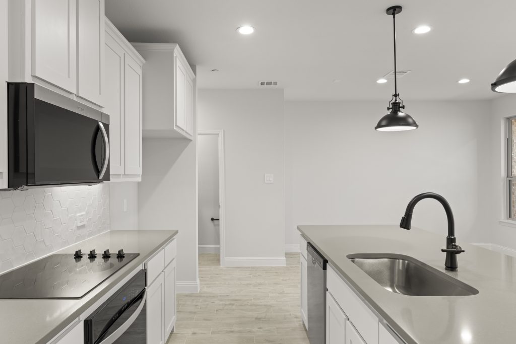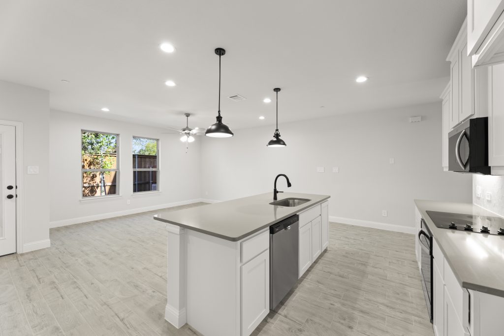 Luxury townhome living in Dallas, TX. Experience open concept living at its best as the California kitchen seamlessly opens to the generously sized family and dining rooms. Conveniently located, a downstairs powder room is appreciated for owners and guests alike.  Upstairs, you’ll also find two secondary bedrooms, a secondary bath, a utility room and private owner’s suite offering dual sink vanity, oversized shower and massive walk-in closet.