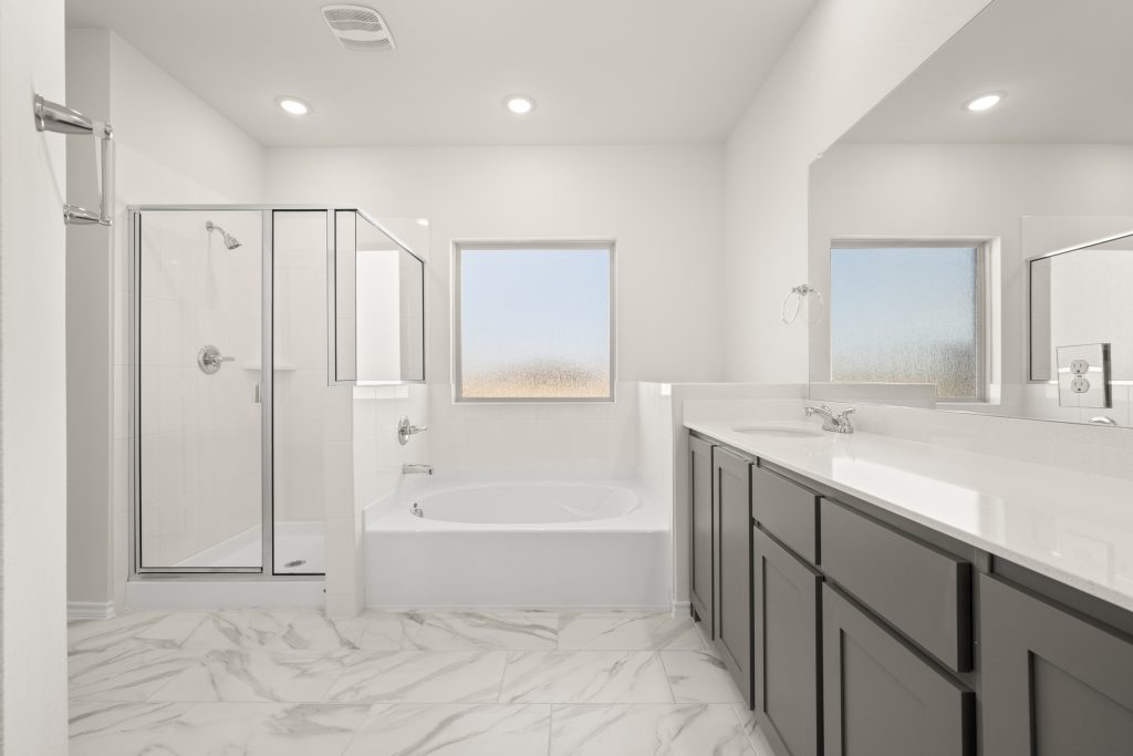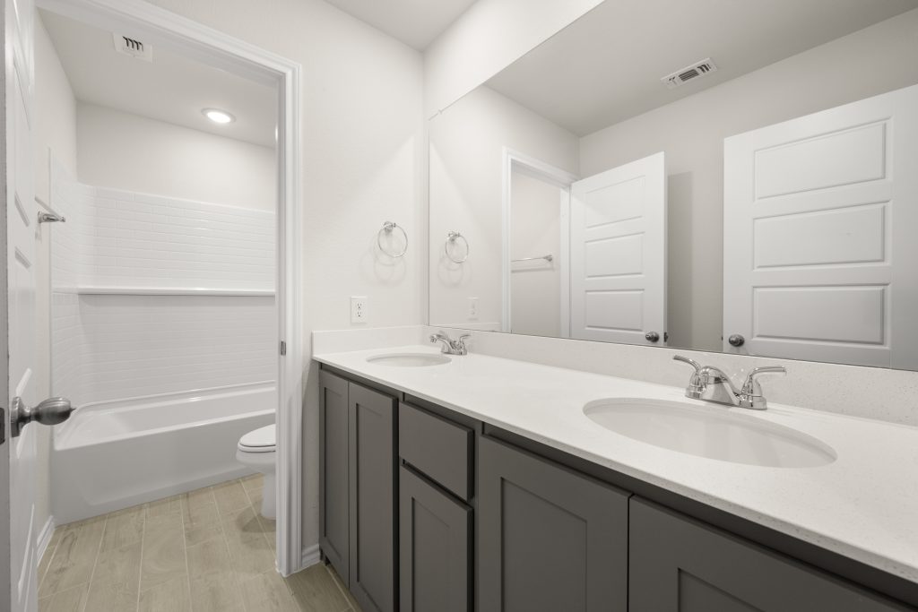 The Phoenix offers a great two-story layout with a California kitchen and a spacious walk-in pantry, which opens to the dining nook and large family room with large windows. This floorplan includes 4 bedrooms and 3 baths with two bedrooms on the main floor, including the owner’s suite with dual vanity sinks, a separate shower and garden tub and large walk-in closet. This plan also offers two bedrooms on the second floor with walk-in closets and a full bathroom!