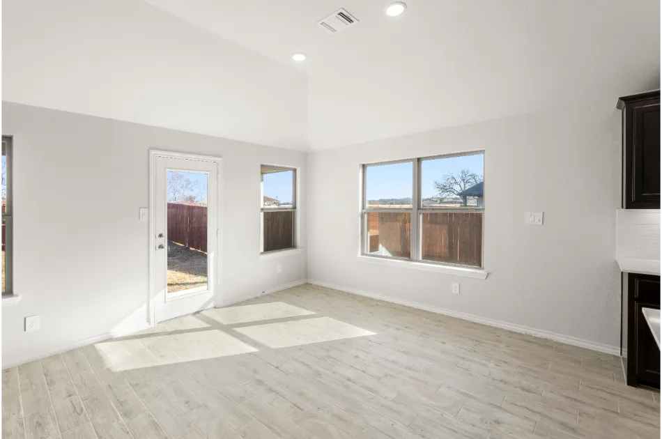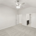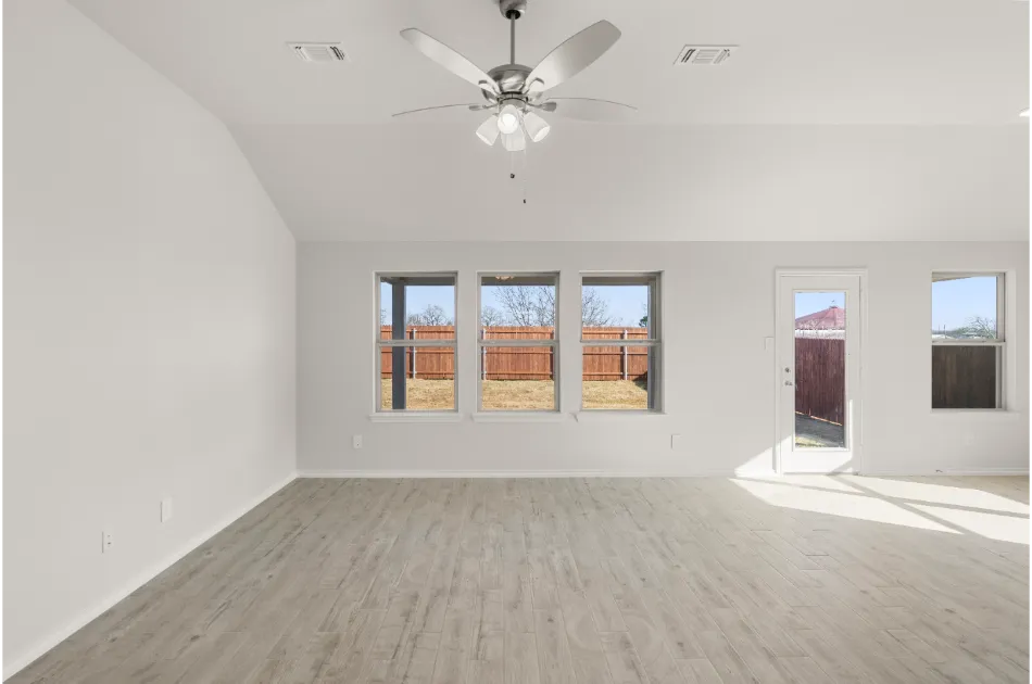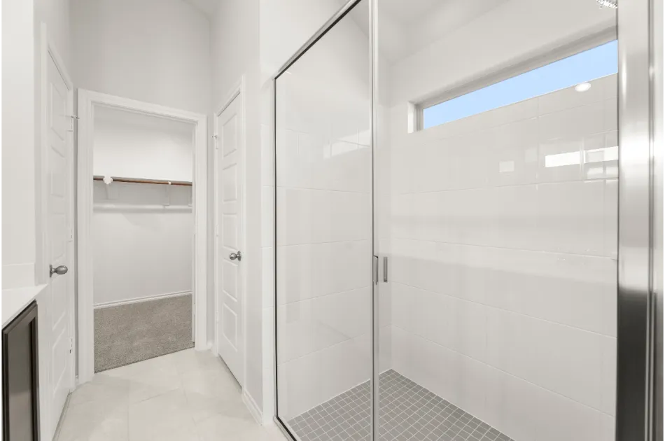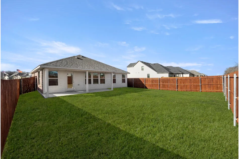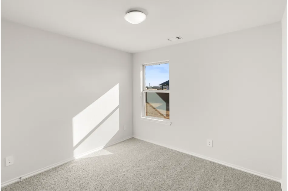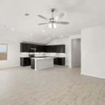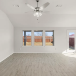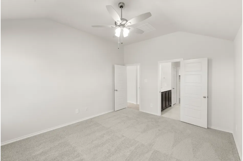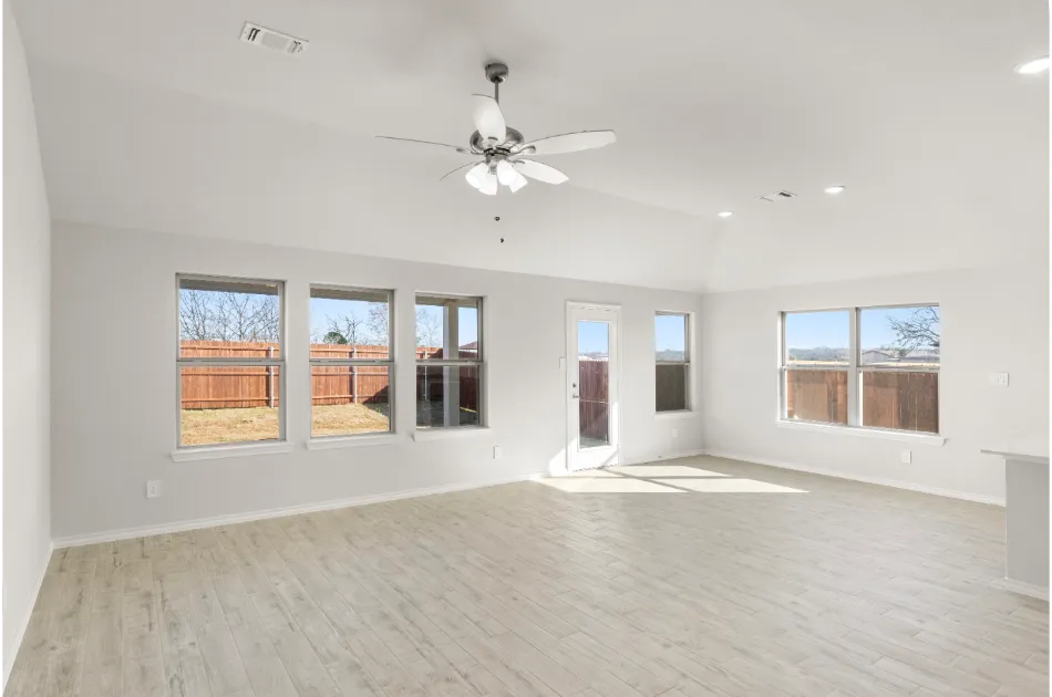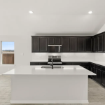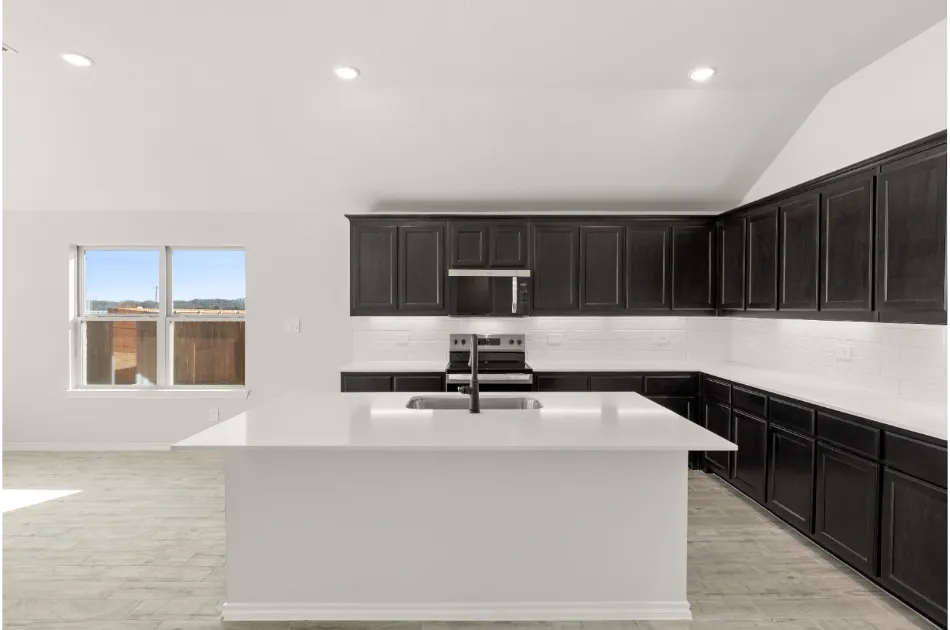 The Atlanta offers an open-concept layout, featuring a kitchen with a spacious walk-in pantry, which opens to the family room. This floorplan includes 3 bedrooms and 2 baths, including a spacious owner suite with dual vanity sinks and large walk-in closet.