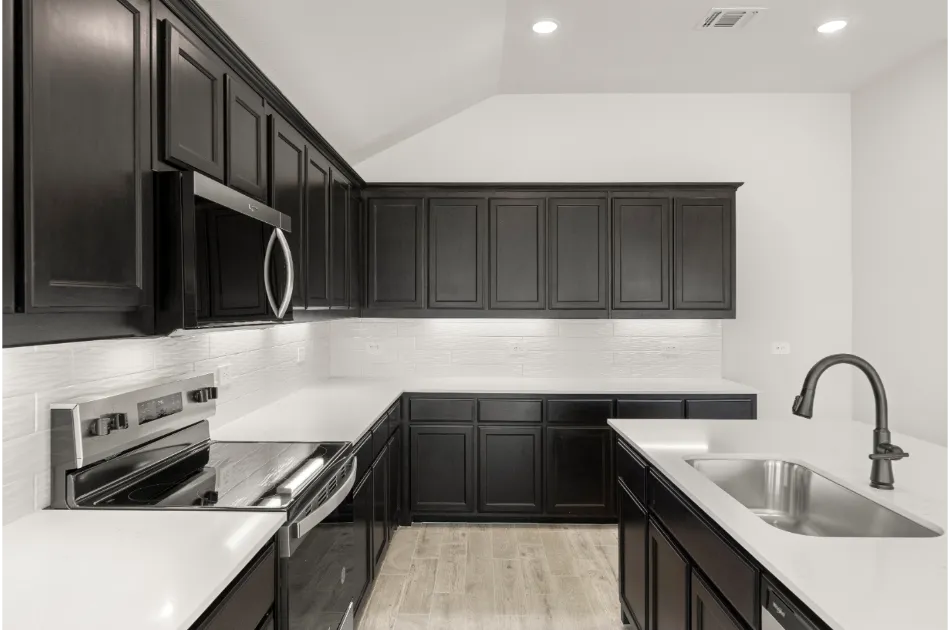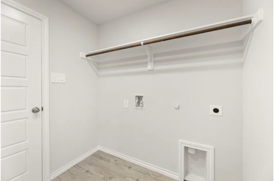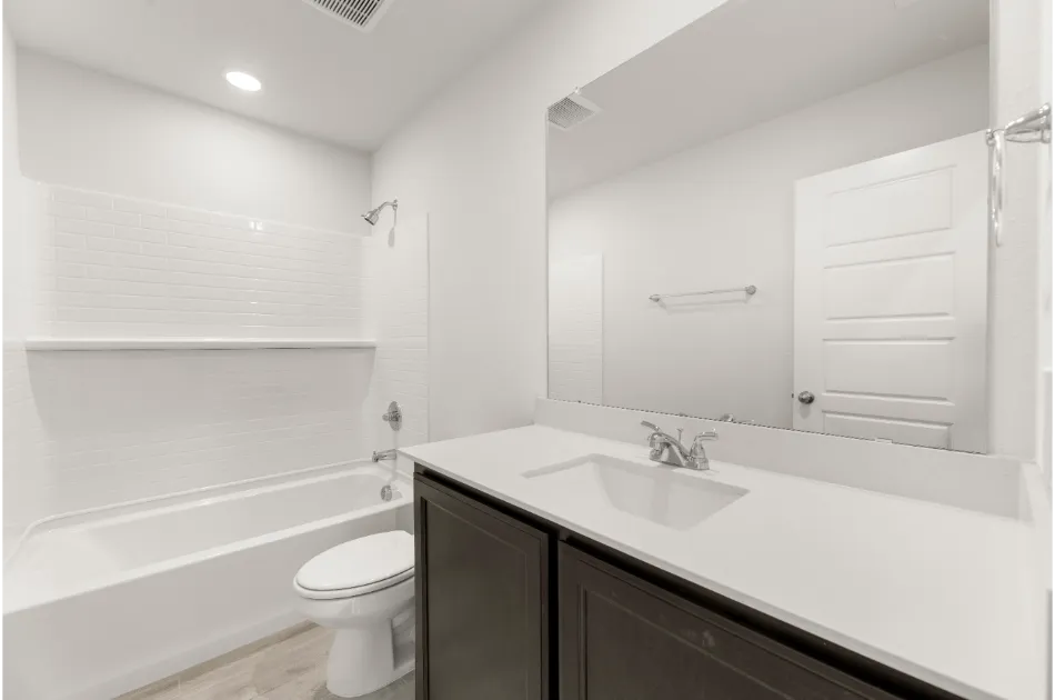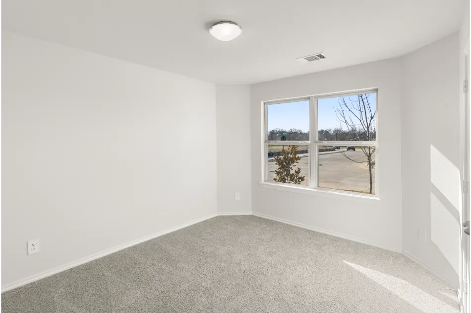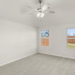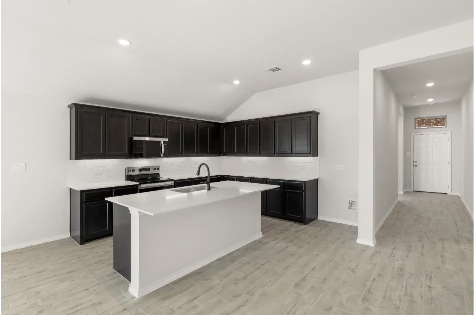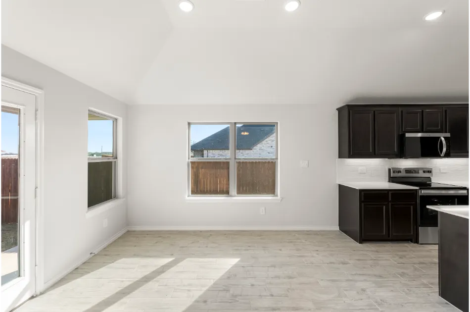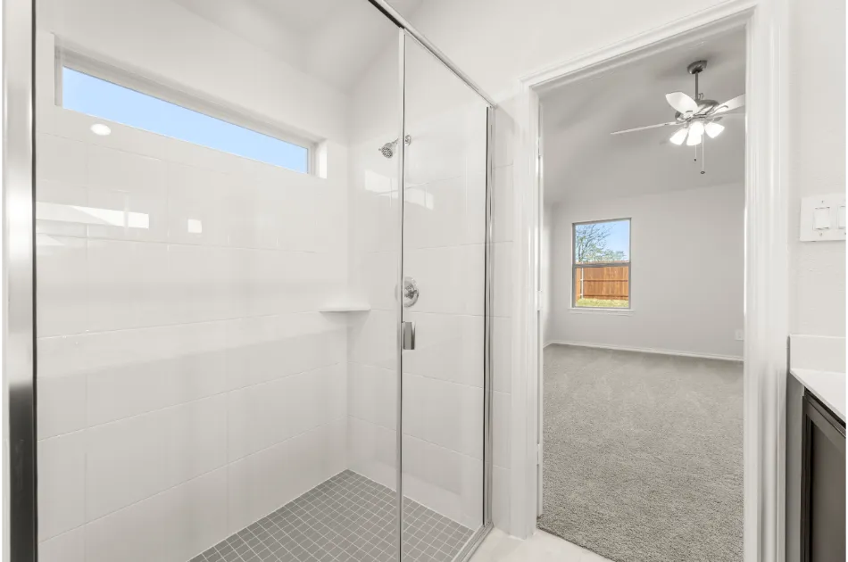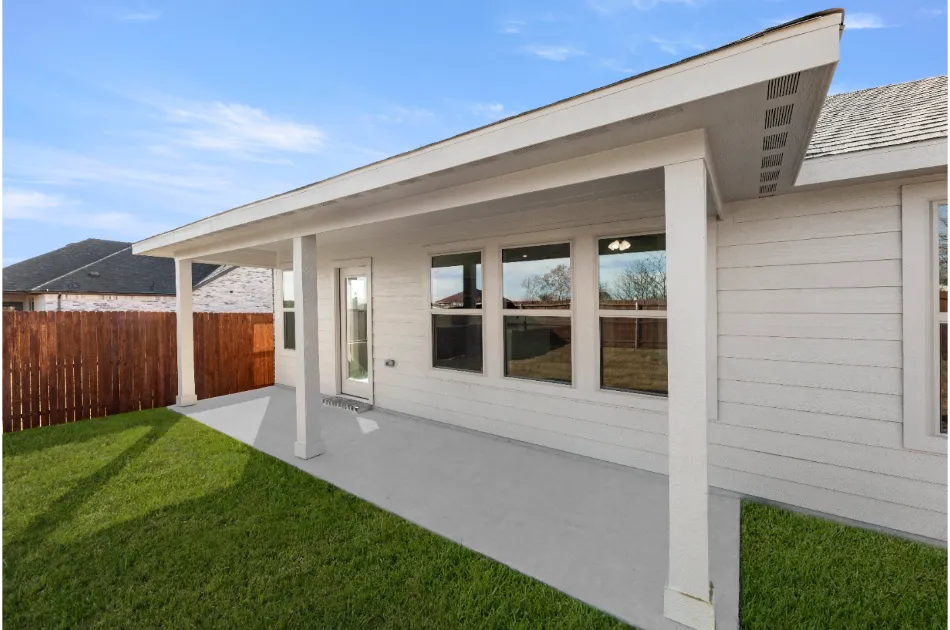 The Atlanta offers an open-concept layout, featuring a kitchen with a spacious walk-in pantry, which opens to the family room. This floorplan includes 3 bedrooms and 2 baths, including a spacious owner suite with dual vanity sinks and large walk-in closet.