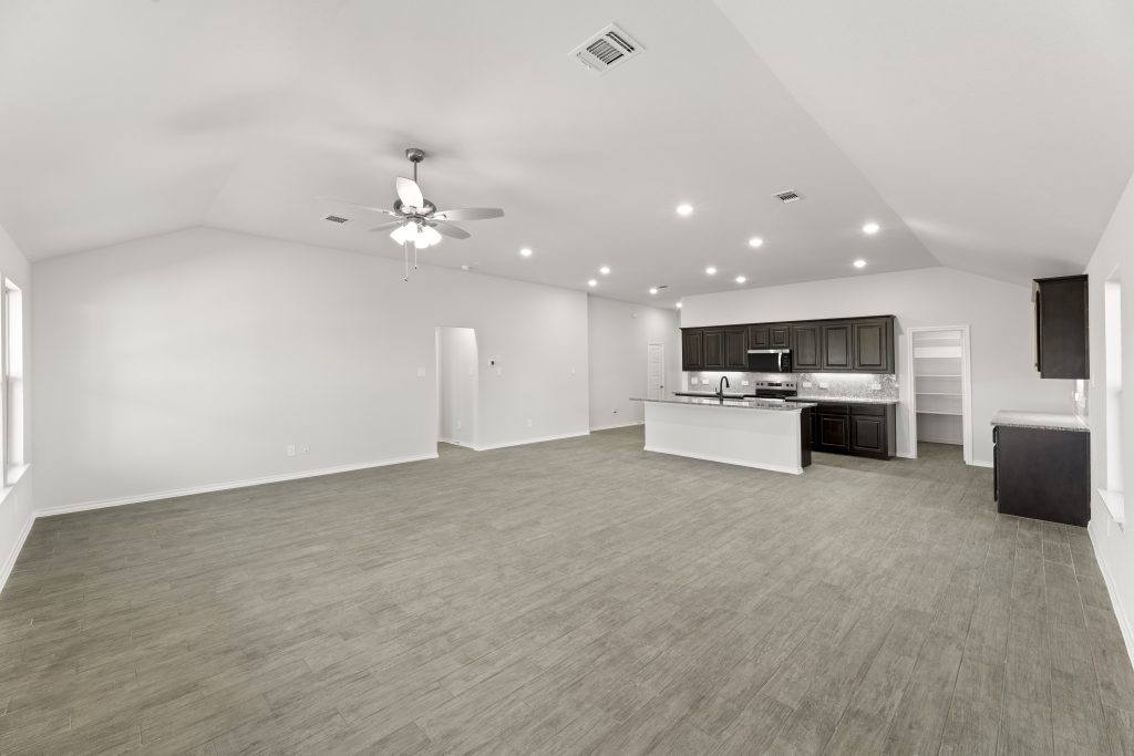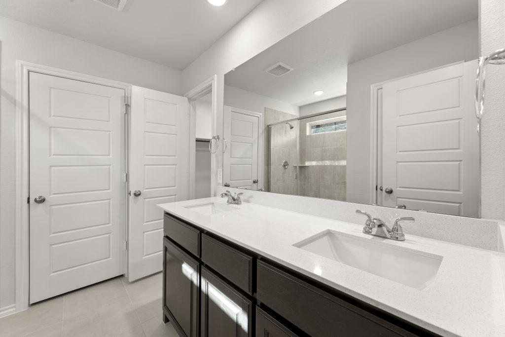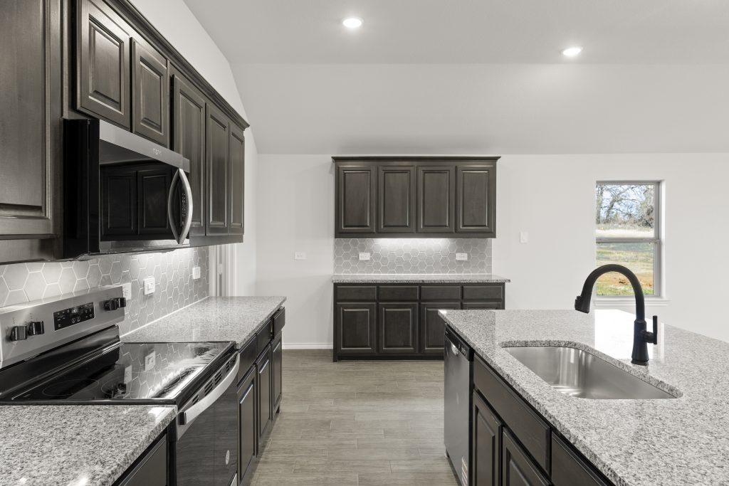 The Lincoln plan offers an open concept design with beautiful California-style kitchen, large island, and vaulted ceilings and a Texas-sized walk-in pantry for small appliances and storage. The elegant owner suite offers separate shower, garden tub, dual-sink vanity and large walk-in closet. Spacious, private secondary bedrooms and separate laundry room.